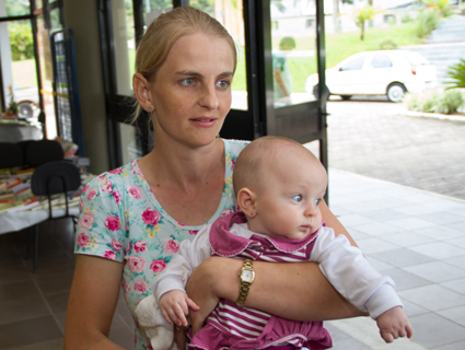 A professora Vânia Rohsmann, veio de Arroio do Tigre com a filha de 4 meses. “Faço questão de participar”