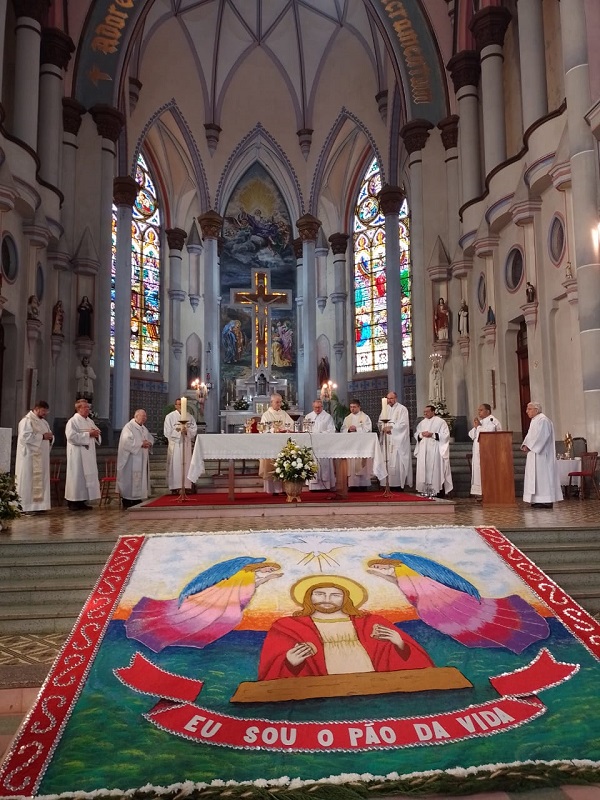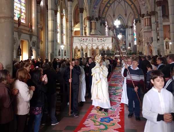 Corpus Christi é uma expressão em latim que significa “corpo de Cristo”, enfatiza o pároco da Catedral, padre Roni Fengler. “Jesus, ao instituir a Eucaristia na Santa Ceia, na Quinta-Feira Santa à noite, reunido no tabernáculo com os apóstolos, tomou o pão e disse: ‘Tomai e comei. Isto é o meu corpo’. E assim, com o cálice de vinho: ‘Tomei e bebei. Isto é meu sangue’. Jesus deixa como legado para seus apóstolos e discípulos a eucaristia, a sua presença real, seu corpo e sangue.