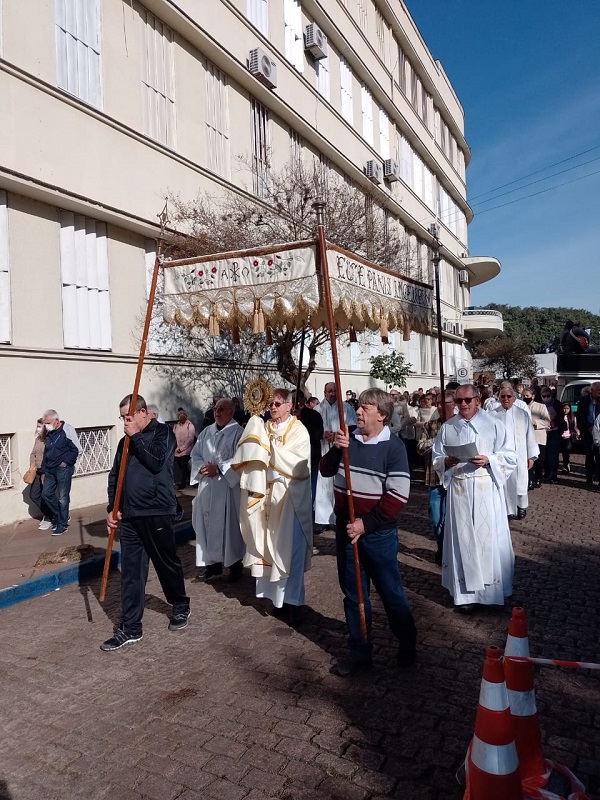 Cantando e rezando os participantes saíram de dentro da Catedral e passaram em frente ao Hospital Santa Cruz e ao Colégio Marista São Luís, com pedidos de benção pela saúde dos enfermos e os profissionais da Saúde e da Educação. O trajeto encerrou junto ao memorial de dom Alberto Etges, junto à Praça Getúlio Vargas, com benção solene do Santíssimo Sacramento.