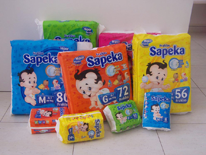 Fraldas Sapeka: na compra de dois pacotes grandes você ganha um pequeno