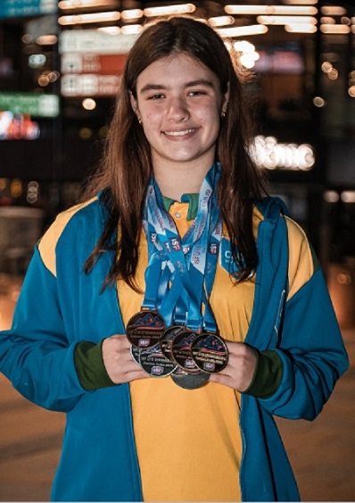 Com esse desempenho, ela tornou-se a maior medalhista da história de todas as edições da Gymnasiade. Um feito gigante para uma atleta de apenas 14 anos, que agora entra para os livros como referência no desporto escolar. “É uma honra tremenda estar no topo do pódio representando meu país. Poder dizer que eu sou campeã mundial soa muito legal”, declarou Renata, esbanjando alegria.