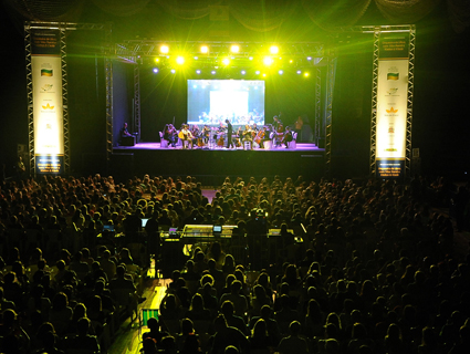 Após o show de abertura realizado pela orquestra da Unisc, comandada por Leandro Schaefer, o gerente de Operações Industriais da Souza Cruz, Jorge Bedin, subiu ao palco junto com a vice-prefeita Helena Hermany e o secretário municipal César Cechinato para darem as boas vindas ao público.
