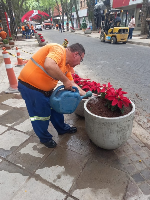 A mobilização reuniu cerca de 40 servidores municipais e exigiu o uso de diversos veículos da prefeitura. Foram utilizados nas tarefas retroescavadeira, caminhão-caçamba, empilhadeira e o caminhão-pipa. A intervenção foi realizada no trecho entre as ruas 28 de Setembro e Borges de Medeiros e teve como objetivo a limpeza e o embelezamento da via, com a instalação de vasos e o plantio de flores ao longo da quadra.