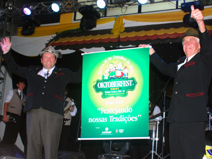 “A Oktoberfest tem este sucesso pelo público que vem prestigiar a festa”, afirmou o humorista, que recebeu chope, cuca e linguiça como presente das soberanas. E como não poderia ser diferente, a música Canto Alegretense ganhou o ritmo de bandinha e tomou conta do espetáculo.