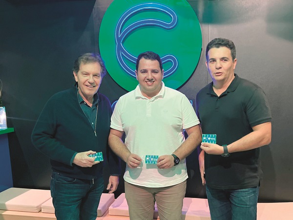 CEO da Contel, Cleber Fernandes, entre os investidores-anjo João Apollinário e Anderson Cavalcante