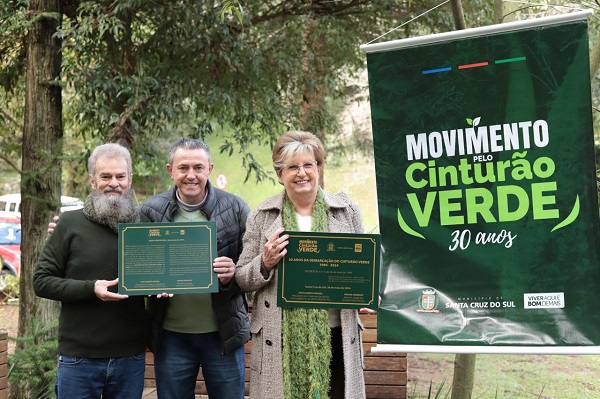 Em meio à grande catástrofe ambiental que acomete o estado, Santa Cruz do Sul dá um importante passo em direção à preservação de seu maior patrimônio natural: o Cinturão Verde. O território ecológico, de 460 hectares, regulamentado em 26 de maio de 1994, na gestão do então prefeito Edmar Hermany, completa sua terceira década de demarcação. Para celebrar a importância da preservação do Cinturão e, principalmente, dar norte às ações de recuperação de áreas degradadas, foi realizada na manhã de domingo, 26, uma cerimônia simbólica no Parque da Gruta.