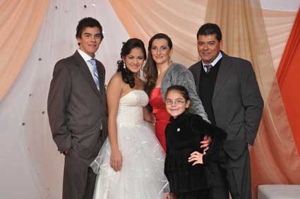 A aniversariante com os pais Jania e Leandro e os manos Igor e Isadora