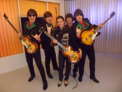 Natália de Rissi com a Banda The Beetles no Jornal do Almoço no dia 15 de junho.