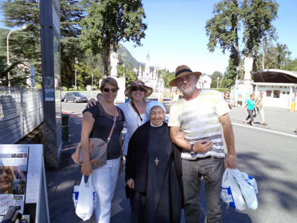 Alayde Motta, Márcia Garibaldi, Madre Paula e Mauro Garibaldi em Lourdes
