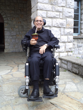 Dom Irineu com um chimarrão, matando saudades das tradições gaúchas