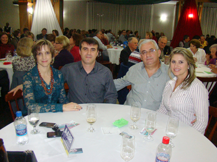 A noite iniciou ao som de um violino e na madrugada teve até “polonese”. Gustavo Rahmeier(violino), introduziu o Coral da AABB, que fez a abertura, brindando a todos com as canções La Montanara e Beve Compare. Um delicioso jantar, destaque culinária italiana, com especial fundo musical, muito bem elaboradas e interpretadas pelo conjunto musical Six Memory. Enquanto as sobremesas eram servidas, o vice-presidente social Luiz Carlos Frantz comandava os SORTEIOS de vários brindes… Em destaque, vinhos, vales viagem Rahmeier e as passagens aéreas TAM, com destino ao Rio de Janeiro e Maceió, gentileza da MaGeTour. Alguns dos premiados Daniel Becker, Odalcyr Tybusch, Iris Grüner, Marcelo Gaier ganhou a passagem ao Rio de Janeiro e Valdir Carvalho da Silva para Maceió..