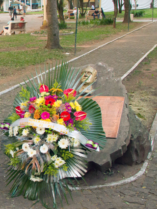 A Executiva do Partido Democrático Trabalhista, o PDT de Santa Cruz do Sul prestou homenagem (foto), na sexta-feira, 24, aos 58 anos da morte de Getúlio Vargas, colocando coroa de flores junto busto e à carta-testamento de Vargas, na Praça que tem o seu nome. O pai dos pobres, Vargas foi o mais controvertido político brasileiro do século XX. De origem gaúcha, presidiu o Brasil entre os anos de 1930 a 1945 e de 1951 a 1954. Entre 1937 e 1945 instalou a fase de ditadura, o chamado Estado Novo. Em 1950, voltou ao poder através de eleições democráticas. Teve uma morte tão polêmica quanto sua vida – com um tiro no coração e uma carta-testamento que moveu massas em 24 de agosto de 1954. Sua influência política permanece viva em pelo menos dois partidos atuais: o PDT e o PTB.
