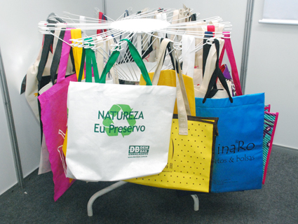 Confeccionadas em TNT, o tecido não tecido, 100% polipropileno e 100% reciclável em contato com a natureza em 6 a 8 meses, as sacolas retornáveis da Dem-Bas de Novo Hamburgo também fizeram bonito na Feira.