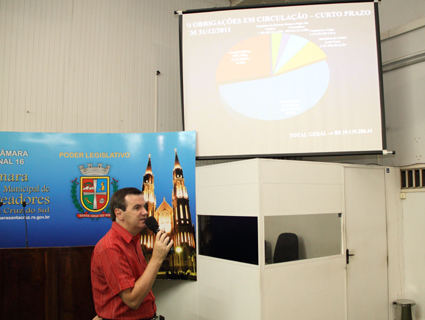 O secretário Elstor Desbessel da Fazenda (foto) comandou audiência pública para apresentar comparativos dos indicadores do município no 3º quadrimestre, fechando o exercício de 2011. Foi na Câmara, na manhã de terça, 28, na presença de funcionários da Fazenda e imprensa apenas – que assinaram presença para dar quorum ao evento. Nenhum santa-cruzense exercendo sua cidadania compareceu. Normal, mas lamentável! Os números apresentados vão para uma ata que será enviada ao Tribunal de Contas do Estado – TCE.