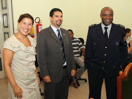 Delegada Lisandra de Castro de Carvalho, delegado Miguel Mendes Ribeiro Neto e o coordenador da Guarda Municipal, Reginaldo Martins Britto de Campos presentes ao evento