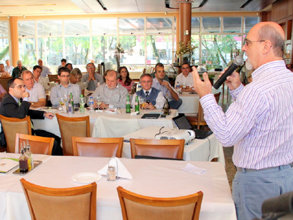A Secretaria do Desenvolvimento Econômico não tem medido esforços no sentido de buscar novos empreendimentos – até pode ter falhado em alguns casos, mas que insiste, é inegável. A vinda da equipe do Desenvolvimento Econômico e Promoção de Investimentos do RS veio reforçar a tendência e instigar uma consciência empreendedora. Na foto, o coordenador adjunto da Central do Sistema Estadual para Atração e Desenvolvimento de Atividades Produtivas- SEADAP, Nery dos Santos Filho. Ele frisou em alto e bom som que “hoje o Estado passa a ser um real parceiro no auxílio ao fluxo de caixa da empresa quando ela está fazendo investimentos”.