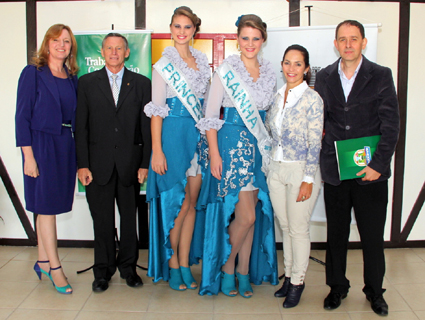 Candelária, estiveram na manhã de terça, 24, na Prefeitura de Santa Cruz do Sul. Foram recebidas pela secretária de Governo, Marla Hansen. Vieram acompanhadas pelo presidente da festa, Jorge Mallmann; diretor de divulgação, Júlio Massirer e pela coordenadora Jaqueline Heinze. A comitiva candelariense veio divulgar e convidar os santa-cruzenses para a festa, que ocorre entre os dias 26 de abril a 1º de maio no Parque Municipal de Eventos Itamar Vezentini.