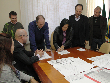 Faz dois anos e meio que o projeto vinha sendo debatido junto à Secretaria do Planejamento, até a assinatura para início das obras na manhã desta segunda-feira, 18, no Gabinete do Executivo – é o Centro Administrativo santa-cruzense que vai sair do papel e do mundo das ideias, para a realidade na esquina das ruas Coronel Oscar Jost e 28 de outubro. As obras devem iniciar em dez dias, a área a ser construída no momento é de 2,2 mil metros quadrados e o custo, R$ 1,4 milhão– R$1 milhão de material e R$ 343 mil de mão de obra. A conclusão prevista para três meses nesta primeira etapa pode ser prorrogada, mas acontece até dezembro com certeza. O custo está orçado em R$18 milhões para os oito pavimentos, que totalizam 9,5 mil metros quadrados de área e o tempo para conclusão é de três anos.