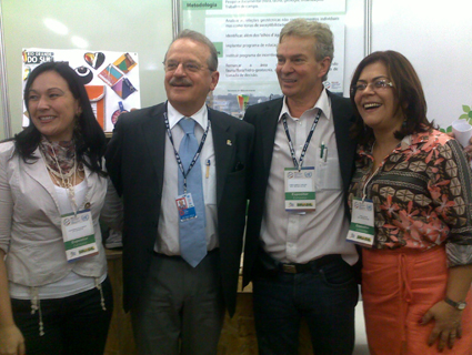 Alessandra de Quadros, o governador Tarso Genro, José Alberto Wenzel e a secretária estadual de Administração, Stela Farias, no estande.