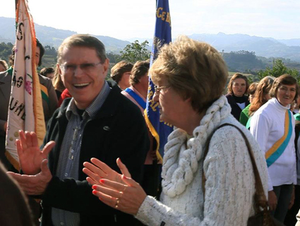 Feriado do colono e motorista na última quarta-feira. Dia dos candidatos irem às bases. Kelly (PTB) e Telmo (PP) fotografaram no desfile das sociedades em Monte Alverne e no Salão Fengler. Neste local, esteve também o candidato Silvério do PSTU.