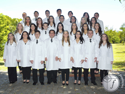 Parece que foi ontem e já são duas turmas de novos médicos formados pela nossa Unisc. A cerimônia da segunda turma (foto) acontece neste sábado, 28 de julho, às 18h, no Auditório Central, e será presidida pelo reitor Vilmar Thomé. O paraninfo é Leandro Bizarro Muller, o  patrono, Homero Neto de Cunha e Agra e professores homenageados, Leandro Luis Assmann, Paulo Cezar Schutz, Ricardo Iserhardt e Tatiana Kurtz. Como amigo da turma, Valeriano Antonio Corbellini, como residente homenageado Marcelo Beck Guimarães e como funcionária homenageada Vanessa Jackisch.