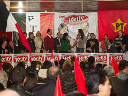 A dupla que concorre pela A Força do Povo (PTB/PT e coligados) deu a largada oficial da campanha na sexta, 27, no Avenida, com centenas (foto) de simpatizantes . Lá foi executado o jingle oficial da campanha em ritmo de samba, que promete um governo voltado aos humildes, prega a continuidade na administração e exalta Kelly como mulher candidata à Prefeitura. Campis pediu aos correligionários que evitem confrontos e foquem em ressaltar os feitos da administração nos últimos quatro anos.