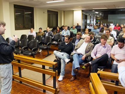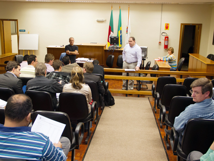 Clima ameno na apresentação do plano de mídia da propaganda eleitoral obrigatória de Santa Cruz do Sul, Passo do Sobrado e Vera Cruz. O encontro de representantes dos partidos e da imprensa regional com o juiz eleitoral André Luís de Moraes Pinto e o chefe de cartório da 162ª zona, Luiz Claudio Costa, aconteceu na manhã desta sexta-feira, 03, no salão do júri do Fórum. A coligação A Força do Povo, liderada por PTB e PT, ficou com o maior tempo de rádio e TV na propaganda gratuita que começa no próximo dia 21. O cálculo foi feito pela Justiça Eleitoral através de um sistema eletrônico do Tribunal Superior Eleitoral e concluído na noite de quinta-feira, 2.