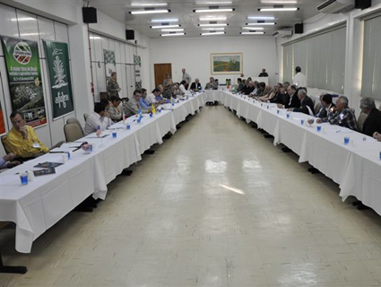 O encontro regional da International Tobacco Growers Association (ITGA) realizado na sede da Associação dos Fumicultores do Brasil teve dois momentos distintos. Pela manhã, representantes dos agricultores trataram da nova safra de tabaco (foto). Durante a tarde, o assunto foi a COP-5, quando representantes dos países que ratificaram a adesão à Convenção-Quadro discutiram as novas medidas restritivas à produção e ao consumo de tabaco no mundo. O diretor-executivo da ITGA, Antonio Abrunhosa, procedeu a apresentação sobre o tema. Participaram representantes dos produtores de tabaco do Brasil, Argentina, Estados Unidos, República Dominicana, Colômbia e México. A COP-5, conferência das partes da Convenção-Quadro para o Controle do Tabaco (CQCT) ocorre em novembro na Coreia do Sul. Na próxima edição publicaremos a posição de Abrunhosa e os itens acordados no encontro.