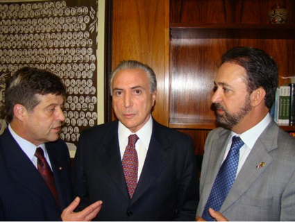 Mendes Ribeiro Filho (PMDB), Michel Temer (PMDB) e Sergio Moraes (PTB)