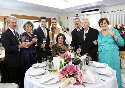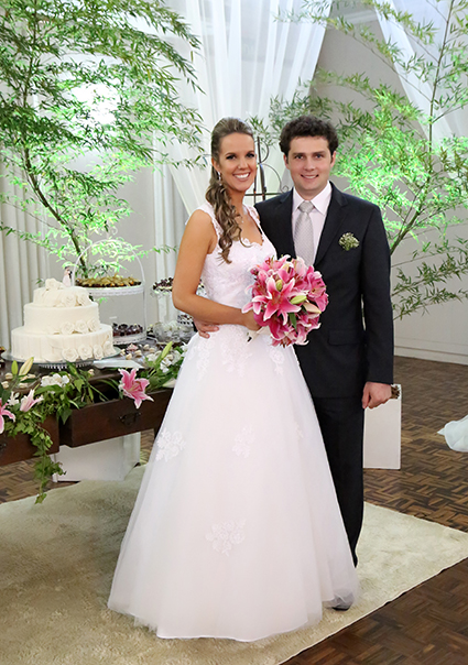 A emocionante cerimônia religiosa de Mênia Brandenburg e Carlos Henrique Back foi realizada no dia 10 de maio, na Catedral São João Batista. Após, os noivos receberam aos familiares, amigos e convidados com uma bela festa na sede da AABB.