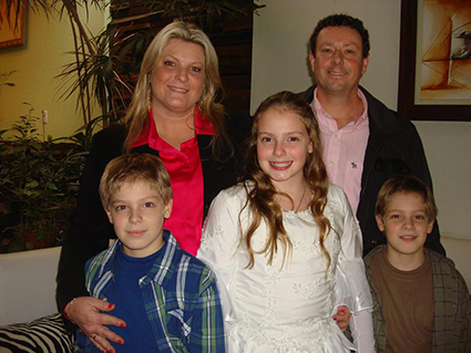 Eliana Fetter Mayer, Leandro Mayer com os filhos Bruno, Luíza e Lucas Fetter Mayer