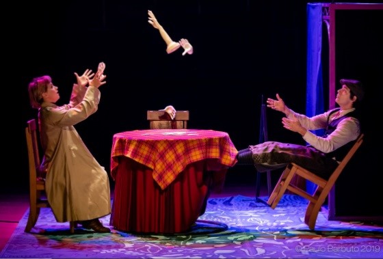 O espetáculo mistura circo, música, humor e artes plásticas para criar situações insólitas, que carregam truques, magia, acrobacia e equilibrismo. Um duelo de acrobacias e danças utilizando elementos como cartas de baralho, taças de vinho, pés, mãos e cabeças em compasso, que denotam a intimidade e sincronia do casal.