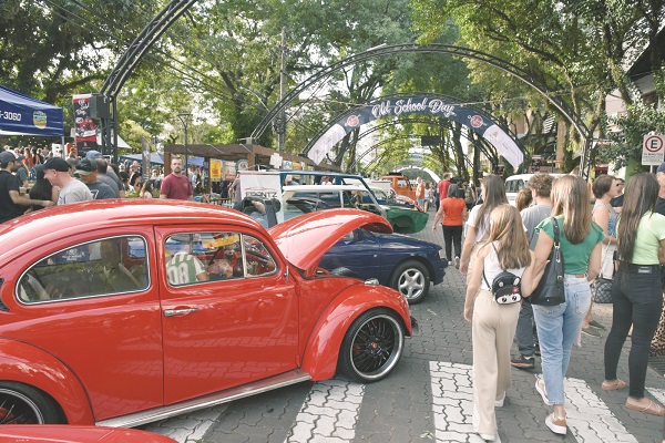 A Praça da Bandeira esteve bastante colorida no sábado, 6. Quem compareceu à terceira edição do Old School Day encheu os olhos com veículos clássicos de variadas cores e modelos, expostos nas ruas do entorno e no gramado da sede do Palacinho da Prefeitura de Santa Cruz do Sul. O rock and roll, as vendas de discos, roupas de brechó, revistas de décadas atrás, entre outras antiguidades comercializadas em tendas instaladas nas calçadas, possibilitaram uma experiência completa de retorno ao passado, a proposta principal do evento.