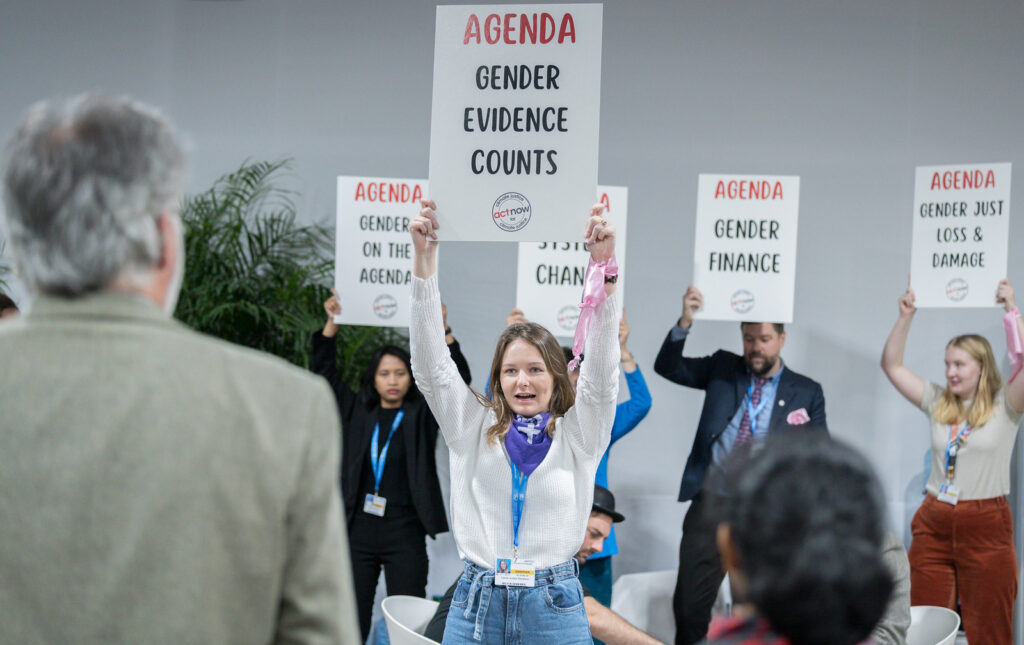 Todos os dias tinham manifestações do lado de dentro exigindo um financiamento justo por “Trillions, not billions” trilhões e não bilhões, já que é necessário 1,3 trilhão por ano para que se chegasse entre 5,1 e 6,8 trilhões – o necessário para os países em desenvolvimento se adaptarem à emergência climática.