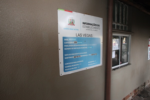 Mais uma ação da Operação Força-Tarefa foi realizada na manhã desta quarta-feira, 13, em Santa Cruz do Sul. O objetivo principal é fiscalizar as casas noturnas do município para ver se as normas de segurança estão de acordo com as exigências previstas em lei. Os estabelecimentos Labarca e Las Vegas foram os locais vistoriados pela Prefeitura Municipal, Vigilância Sanitária, Fiscalização de Trânsito, Secretaria de Meio Ambiente, Guarda Municipal e Corpo de Bombeiros.