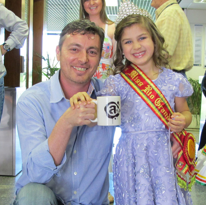 A Mini Miss Rio Grande do Sul e Mini Miss Germany Brasil, Milena Stepanienco Chagas, esteve em visita à Zero Hora e registrou um flash com o jornalista David Coimbra.
