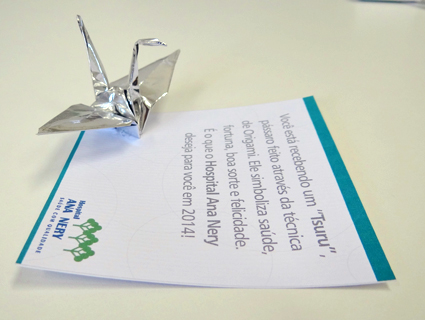 O primeiro café da manhã de 2014 dos pacientes internados no Ana Nery veio acompanhado de um “Tsuru”, um pássaro feito através da técnica de Origami que simboliza saúde, fortuna, boa sorte e felicidade. A ação teve por objetivo amenizar a angústia daqueles que, por força maior, passaram o ano novo dentro de um hospital.
