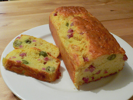O pão de azeitonas, chamado pelos franceses de “Cake aux olives”, pode ser servido em fatias para uma entrada, acompanhado de uma salada verde ou cortado em cubos e servido como aperitivo. Além disso, é de fácil preparação, podendo ser feito de véspera.