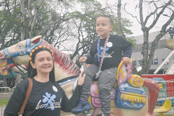 Joelma Bataioli, moradora de Santa Cruz do Sul e vice-presidente do grupo Luz Azul, trouxe para o parque o filho Henrique. “É uma acolhida muito boa, pouco barulho e que ajuda bastante pois incomoda os autistas. Meu filho tem 7 anos e estamos realizados em participar!”