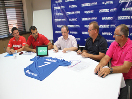 A Universidade de Santa Cruz do Sul (Unisc) e a Assaf renovaram o contrato de patrocínio para a temporada de torneios de futsal de 2012. O documento foi assinado na tarde desta segunda-feira, 27 de fevereiro, na sala de reuniões da Reitoria. Representando a Unisc, estiveram presentes o reitor Vilmar Thomé, o coordenador da Assessoria de Comunicação e Marketing, Everson Carvalho de Bello, e o coordenador do setor Unisc Esporte, Fabrício Gianezini. Pela Assaf, marcaram presença o presidente Paulo Luiz Meinhardt e o diretor financeiro Alexandre da Silva.