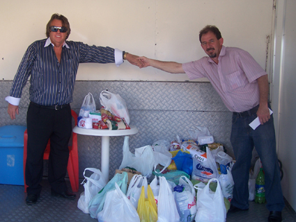 Hugo Mayer e Gilberto Piacentini com parte das arrecadações que serão destinadas ao Asilo dos Idosos