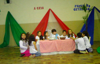 A segunda etapa aconteceu no dia 16 de abril, com o teatro “A verdadeira história da Páscoa”, apresentado pelos pequenos do 1° ao 5° ano as principais cenas da via-sacra. O grupo de jovens aproveitou a ocasião para encenar o teatro de mãos, que fez o público delirar.