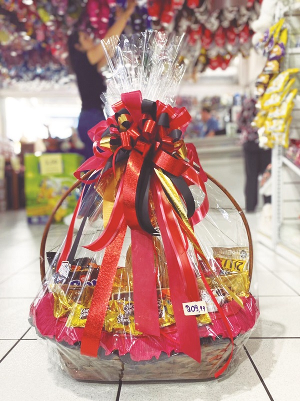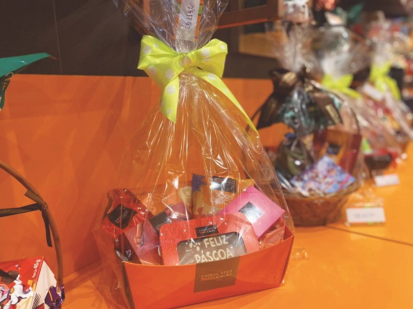 Para aqueles não abrem mão de adoçar o momento com o bom e velho chocolate, outro estabelecimento que também tem as cestas como ponto forte nas vendas para a Páscoa é a Brasil Cacau. Localizada bem no centro de Santa Cruz, na rua Marechal Floriano, 416, a franquia trabalha com duas opções: cestas personalizadas ou sugestões da Brasil Cacau (foto). De acordo com o sócio-proprietário, Rafael de Souza Lau, a loja opta por deixar cestas já montadas para aqueles clientes apressados. “Sempre tem alguém que não está com tempo para escolher os produtos, por isso oferecemos essa opção”, explica.