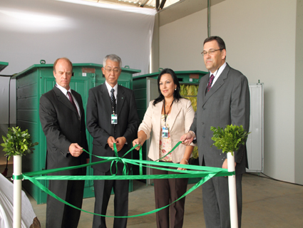 Robert Bruce, Mitsuomi Koizumi, Kelly Moraes e Eduardo Renner desenlaçam a fita, inaugurando oficialmente o Adet da JTI