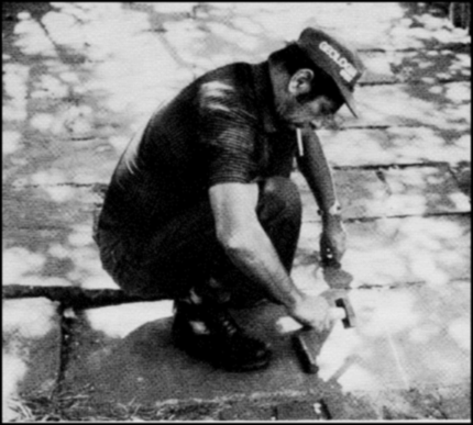 Valdor Ochagávia da Costa coletando a referida laje na calçada de