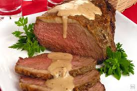 Em uma tigela, tempere a carne com o sal e a pimenta. Coloque em uma fôrma grande com a gordura virada para cima. Espalhe a manteiga sobre a carne e os dentes de alho ao redor. Leve ao forno alto, preaquecido, por 30 minutos. Vire a carne, adicione a água, raspe a fôrma com uma colher de pau e asse por mais 30 minutos. Retire os dentes de alho e esprema para que a polpa saia da casca. Em uma frigideira pequena, em fogo médio, coloque a polpa de alho, o líquido restante da fôrma, o amido de milho, o creme de leite e as ervas. Ferva até engrossar, fatie a carne e cubra com o molho. Sirva decorada como desejar.