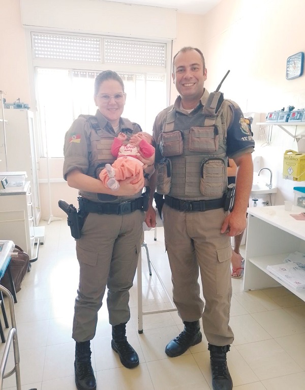 A Brigada Militar, através do 23° Batalhão de Polícia Militar (23°BPM), realizou na manhã de quinta-feira, 24 de novembro, no Bairro Bom Fim em Santa Cruz do Sul, uma manobra de salvamento de um bebê de apenas 28 dias de vida. A dupla de policiais Fernando de Souza Soares e Roziane Schalemberg foram abordados por um condutor de uma motocicleta informando que havia uma família pedindo socorro com uma bebê nos braços.