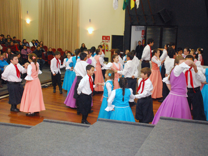 Entre uma palestra e outra, os professores puderam conferir alguns projetos desenvolvidos nas escolas. Um deles foi a apresentação de danças gaúchas, encenadas pelos alunos da Escola Municipal de Ensino Fundamental (Emef) Felipe Becker, localizada em Paredão.