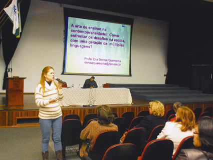 Na manhã houve a palestra “Expectativas de Aprendizagem”, ministrada pela mestra em educação Sônia Bier. Na parte da tarde, os docentes ouviram a psicóloga Denise Quaresma, sobre “A arte de ensinar na contemporaneidade: como enfrentar os desafios na escola com uma geração de múltiplas linguagens”.