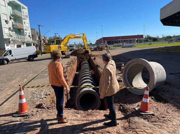 Na tarde dessa quarta-feira, 26, a prefeita Helena Hermany e o vice-prefeito Elstor Desbessell acompanharam as obras que prometem dar uma cara nova ao entorno da Estação Rodoviária de Santa Cruz do Sul e ainda evitar alagamentos como os registrados no início do ano. Os trabalhos incluem drenagem superficial, pavimentação asfáltica e sinalização nas travessas Erico Verissimo e Vinicius de Moraes e na Rua Villa Lobos.